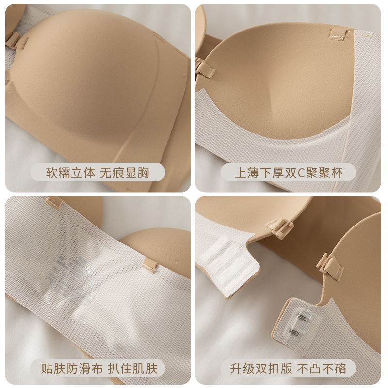 无痕前扣内衣女小胸聚拢防滑无肩带胸罩无钢圈防下垂收副乳文胸夏