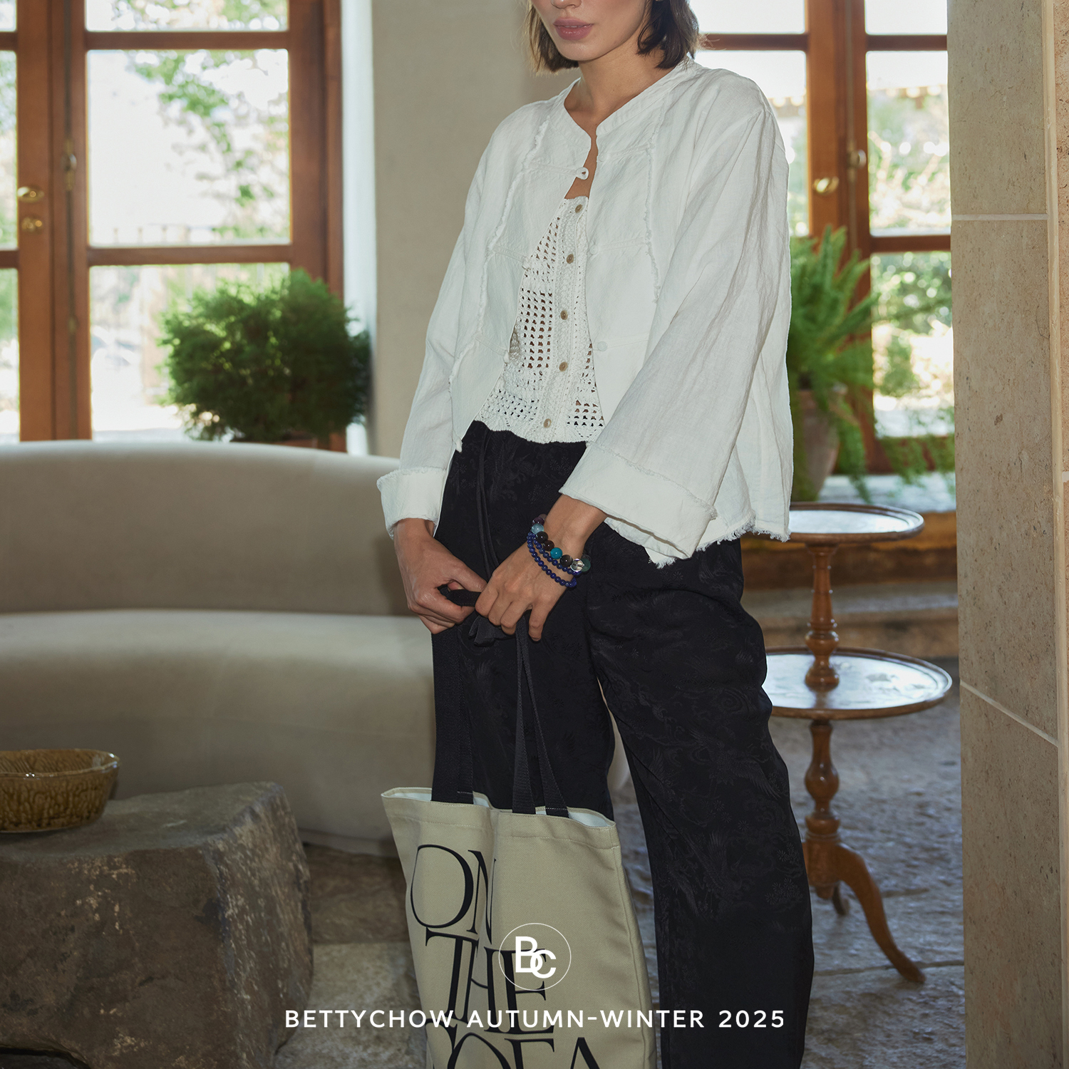 Bettychow Betty私服!cleanflt新中式手工小流苏亚麻外套白色