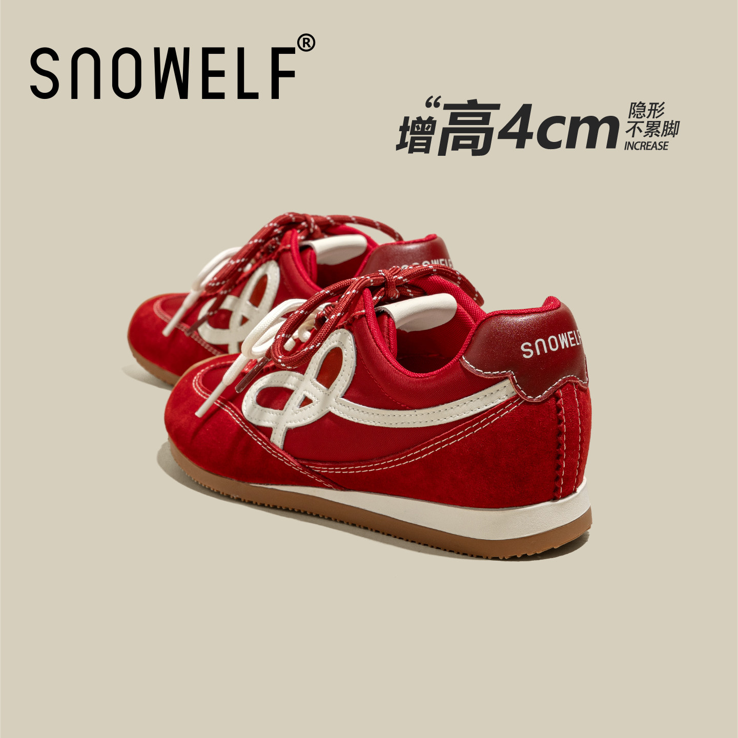 红色女鞋内增高德训鞋子2026新款爆款春季百搭轻便阿甘运动休闲鞋