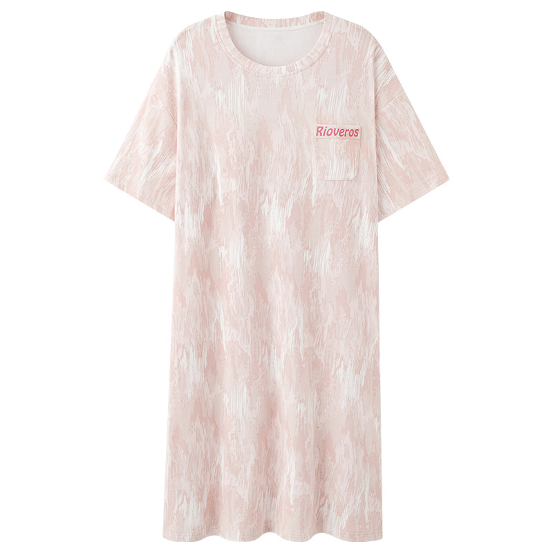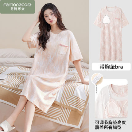 夏季女款短袖纯棉带胸垫睡裙