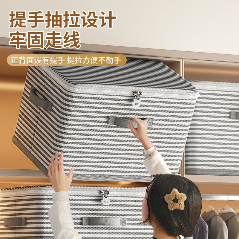 手提收纳箱家用条纹衣柜装衣服被子玩具整理箱可折叠储物箱神器
