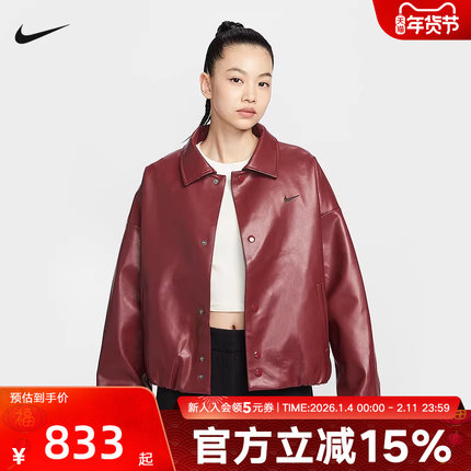 NIKE耐克女子超宽松教练夹克冬新款轻便刺绣塔夫绸外套IO0477-677