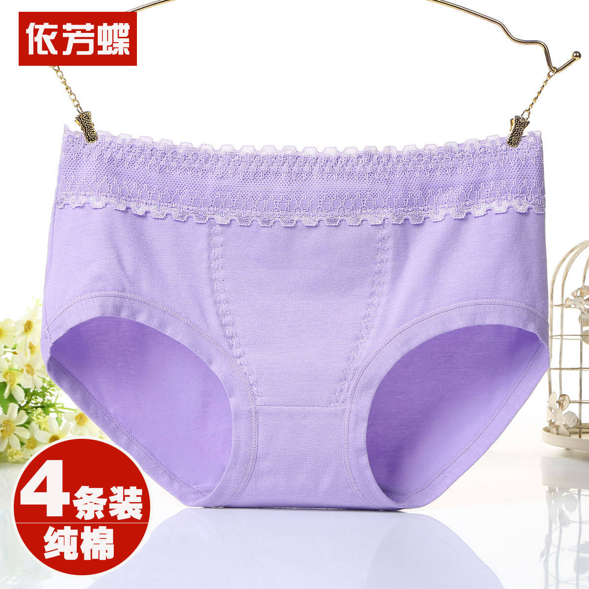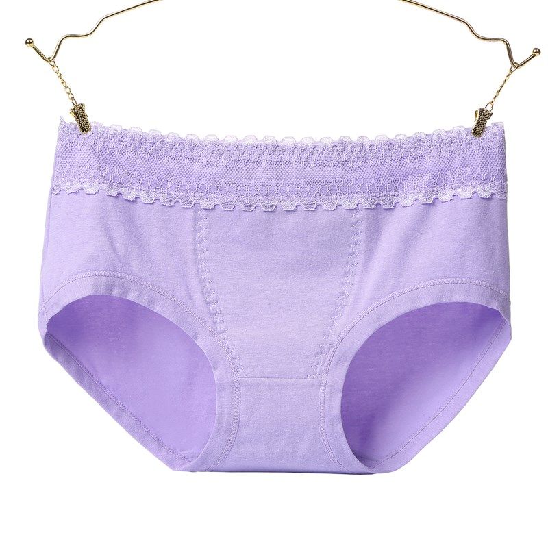 4条 新款纯棉内裤女士青年中腰暖宫三角裤蕾丝边生理裤甜美女裤头