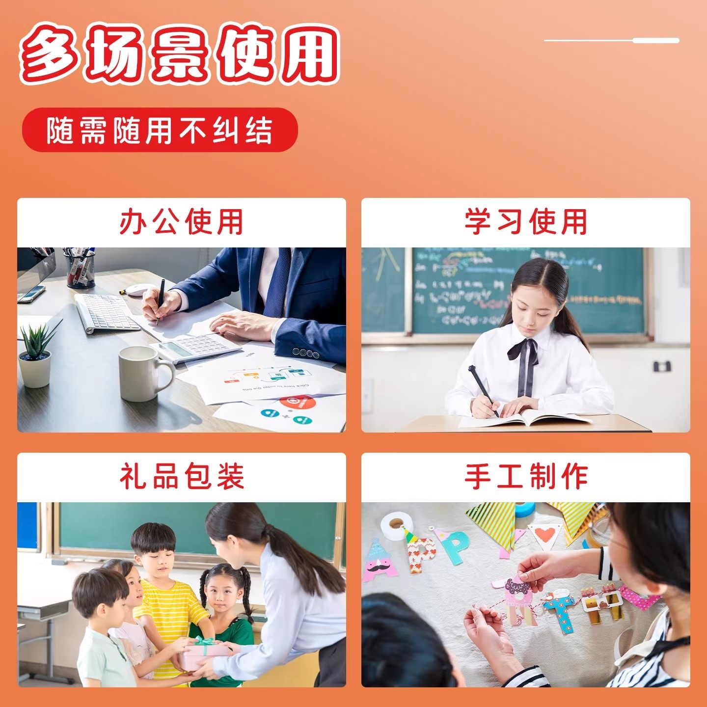 强力双面胶高粘度固定强力无痕可手撕易撕两面胶棉纸办公用品超薄透明儿童手工学生专用文具墙面贴加厚宽胶带