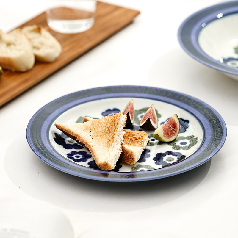 日本进口美浓烧陶瓷盘子釉下彩花卉点心水果盘菜盘北欧风餐盘