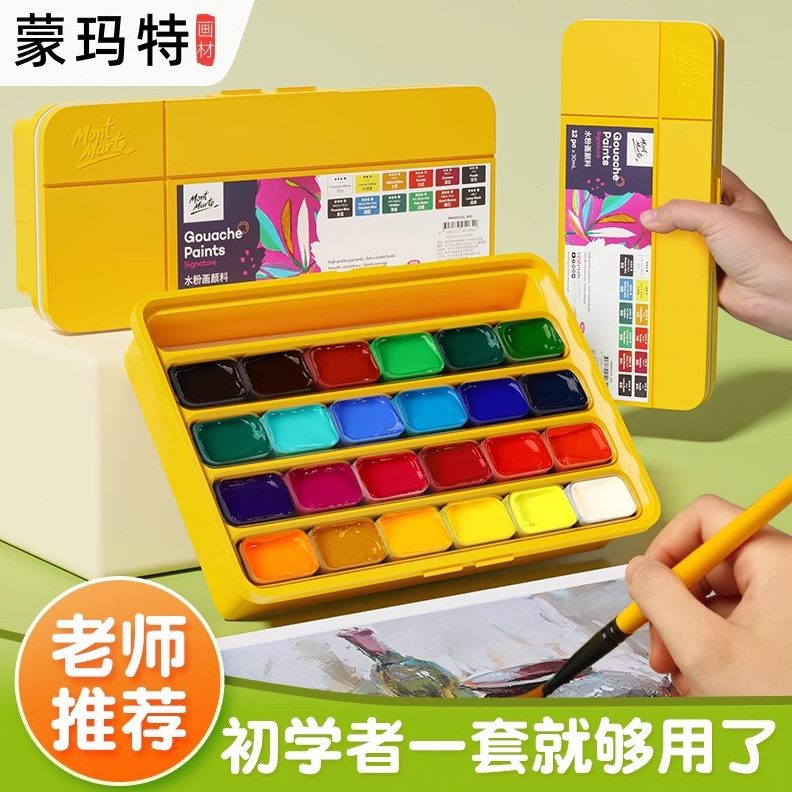 甄选蒙玛特水粉颜料套装24色果冻颜料画室集训便携艺考30ml水粉画