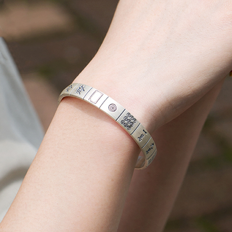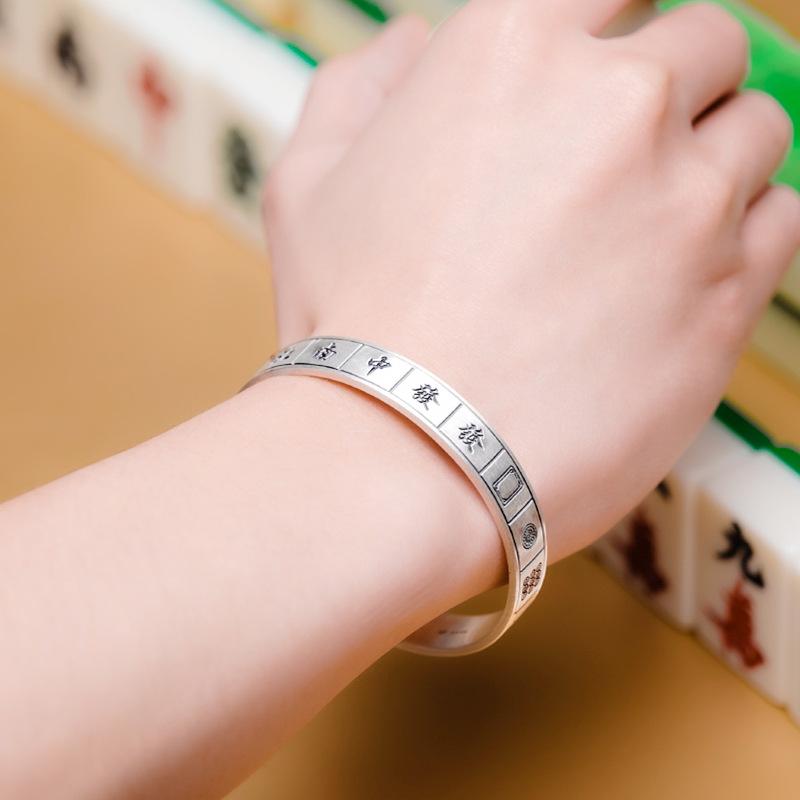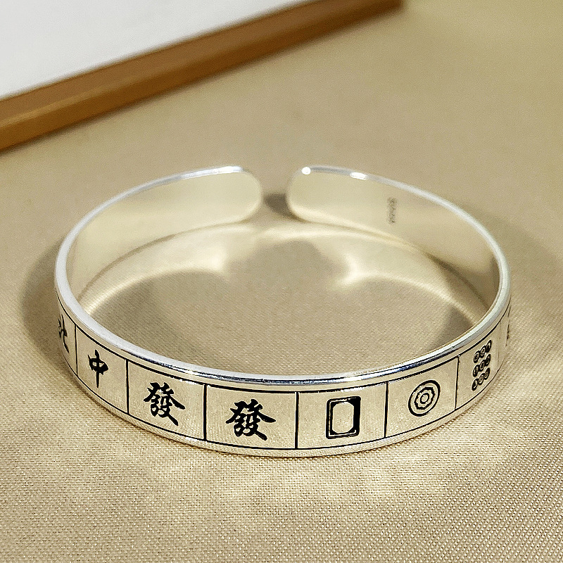 Young复古创意泰银款麻将手镯手环开口十三幺雀神雀圣网红指环
