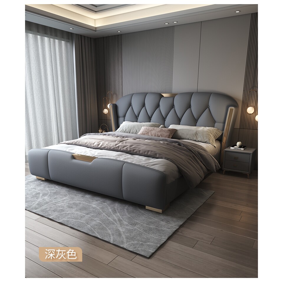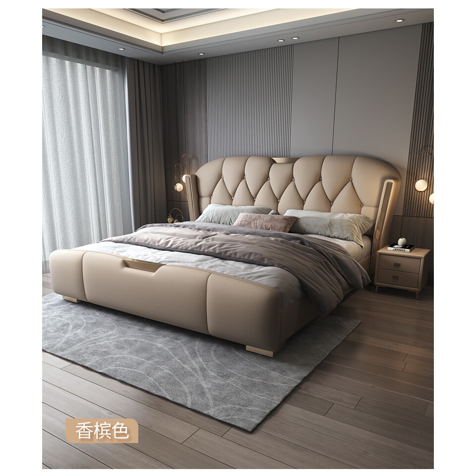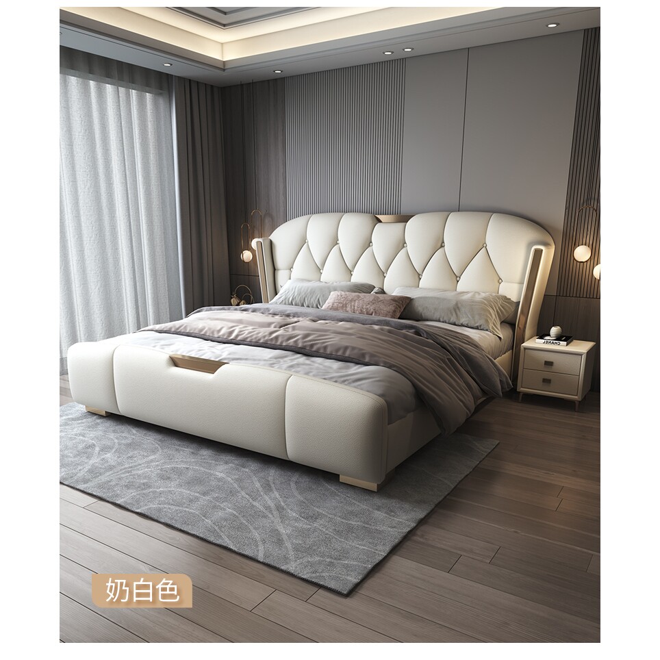 尚品宅配高端大气真皮床1.8米现代简约主卧双人大床2意式轻奢家用