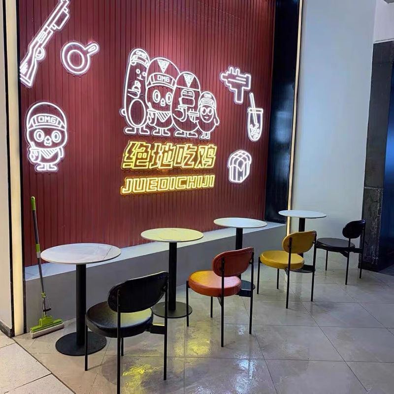 网红岩板餐桌 清吧咖啡厅西餐厅桌椅 冷饮面馆甜品奶茶店小圆方桌