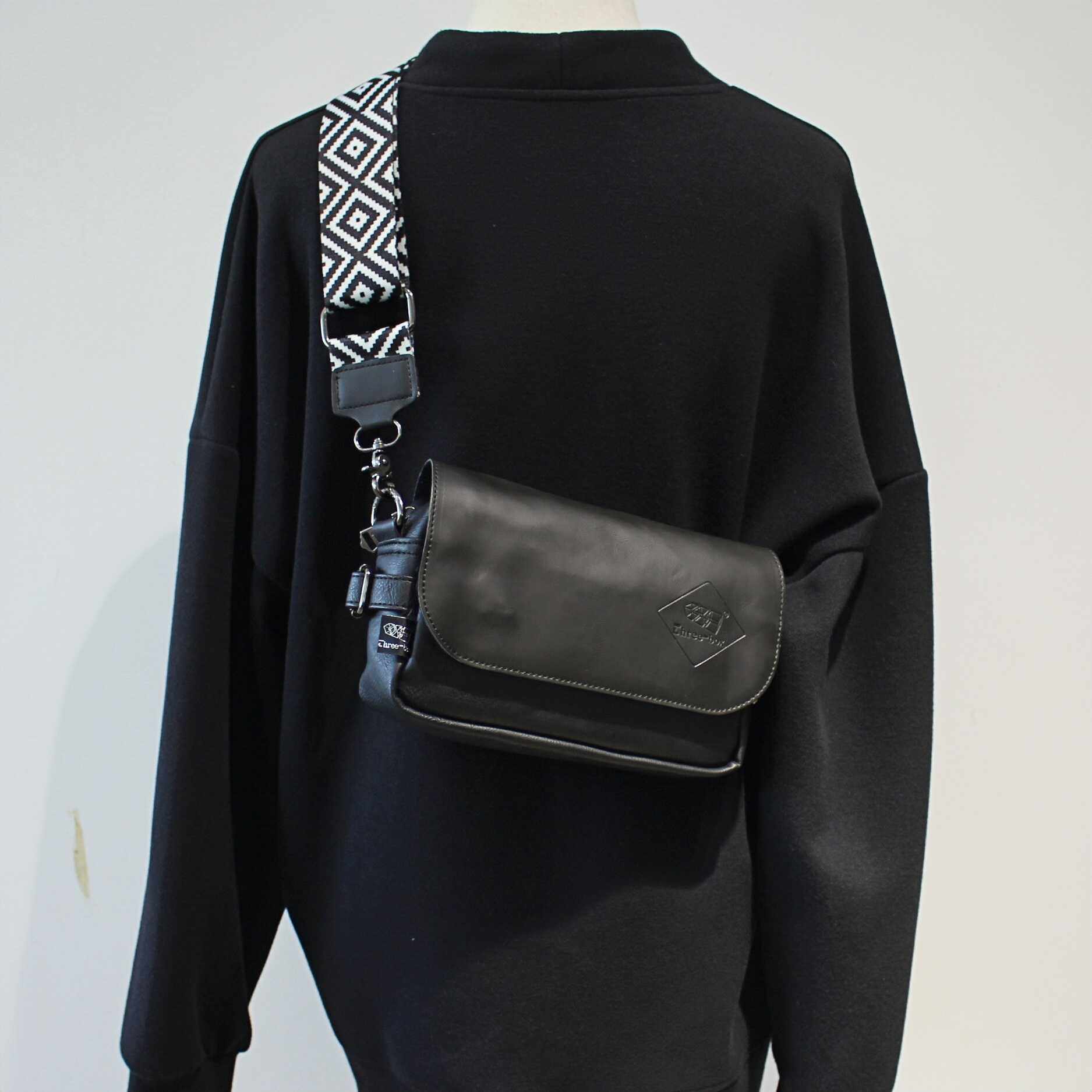 皮质休闲手机包ThreeBox翻盖潮牌