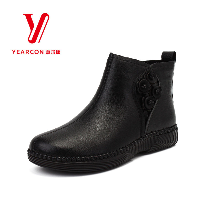 意尔康真皮妈妈棉鞋真皮复古短靴