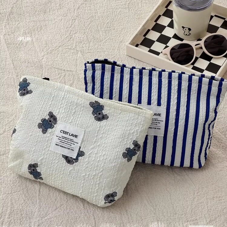 原创自制韩系ins卡通小狗化妆包文艺百搭便携护肤品收纳包手拿包