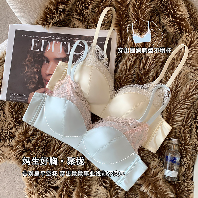 无痕缎面光面内衣女软钢圈调整型防下垂收副乳上托小胸聚拢文胸罩