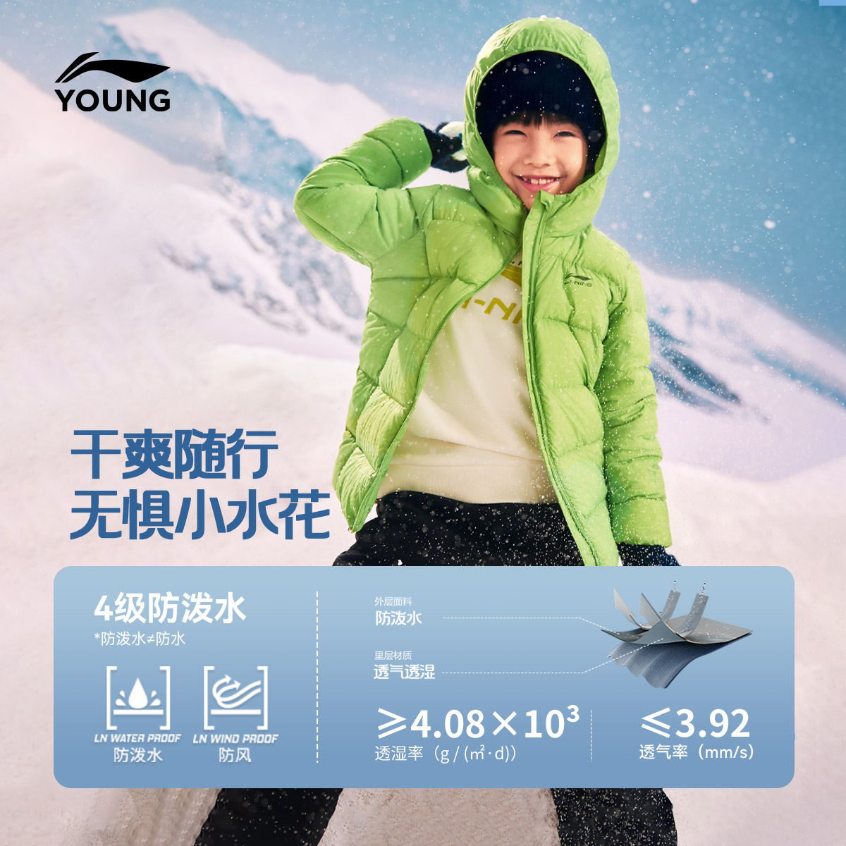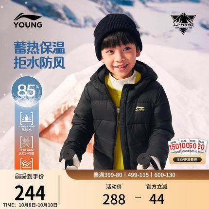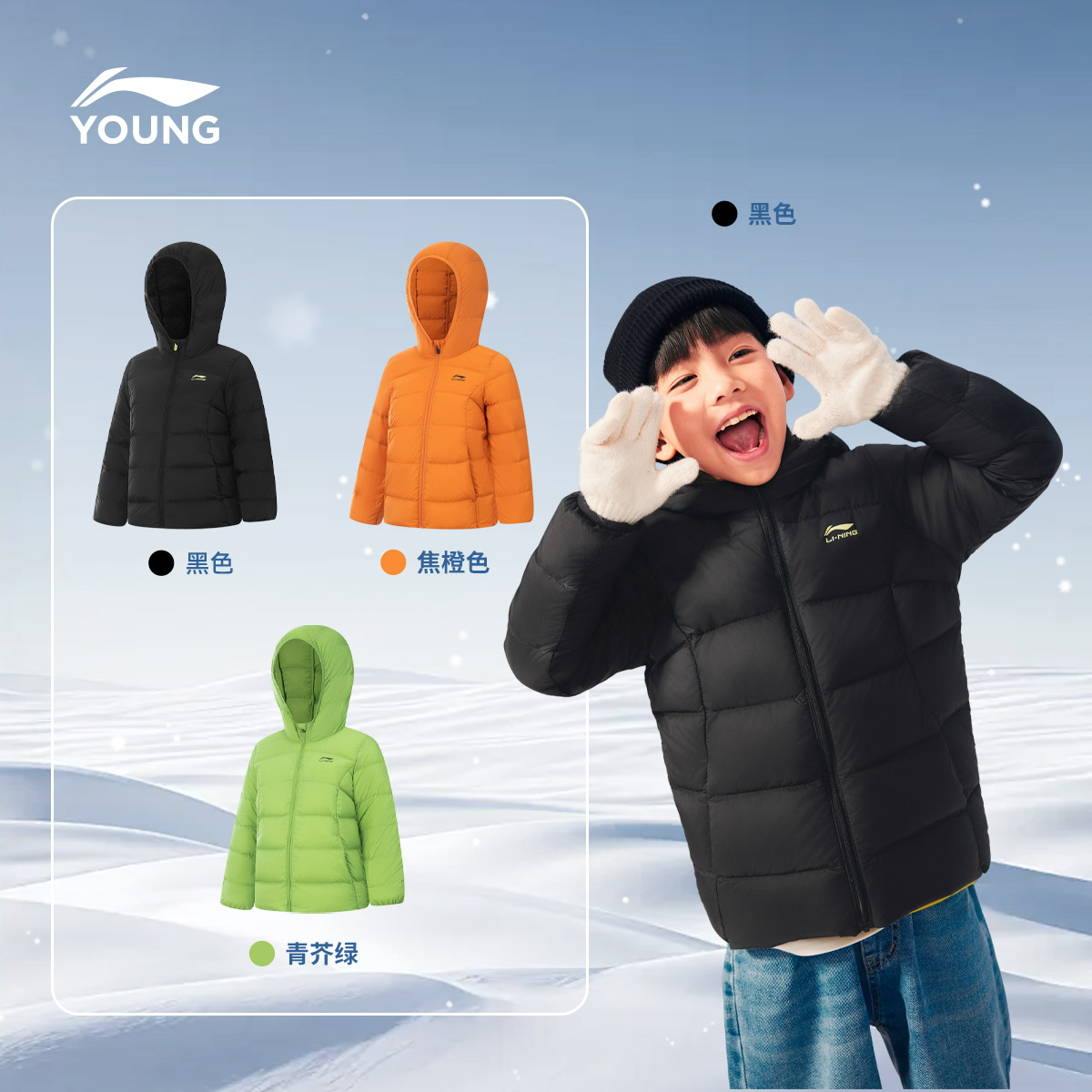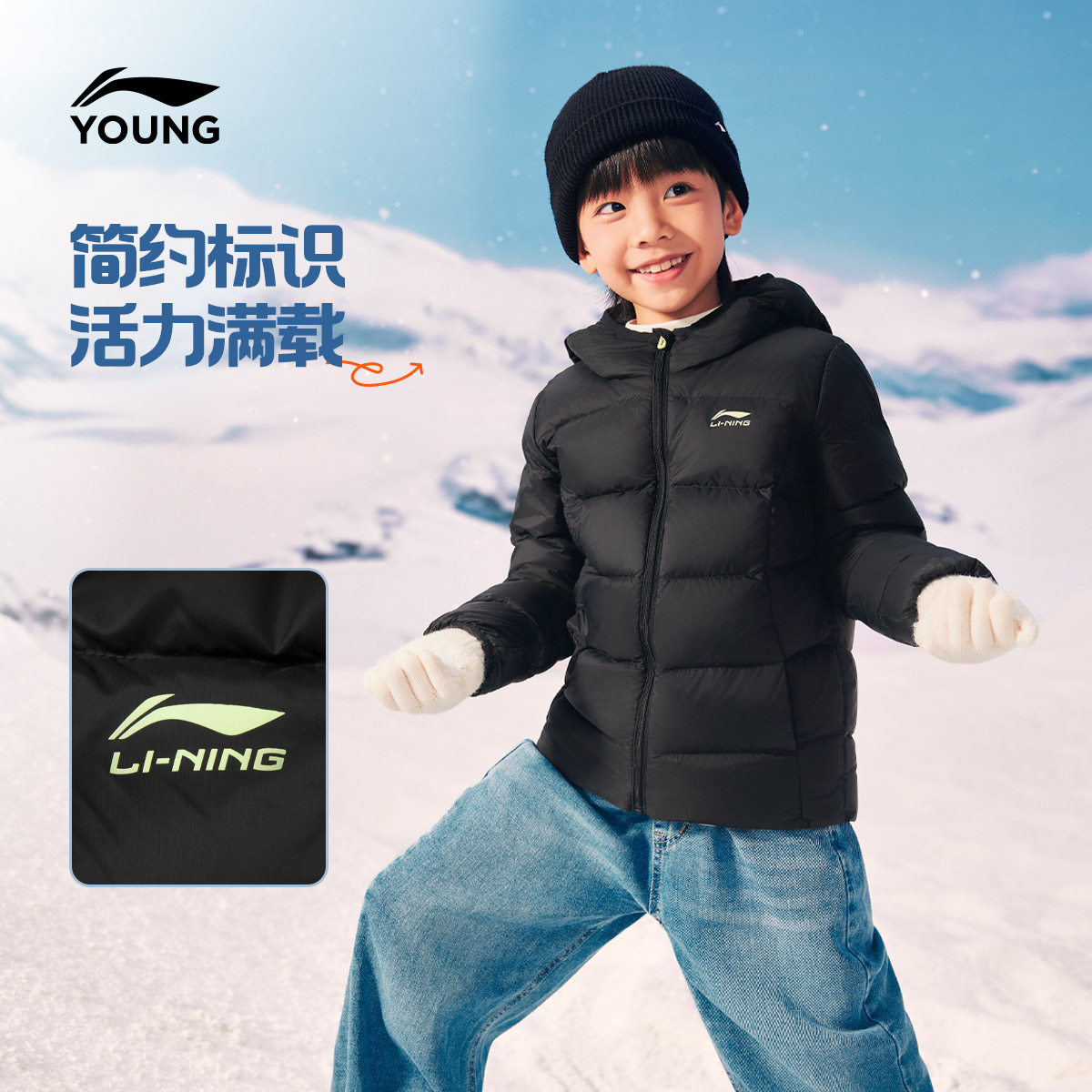 李宁童装短款短羽绒服男小童2025新款保暖连帽秋季休闲鸭绒童装