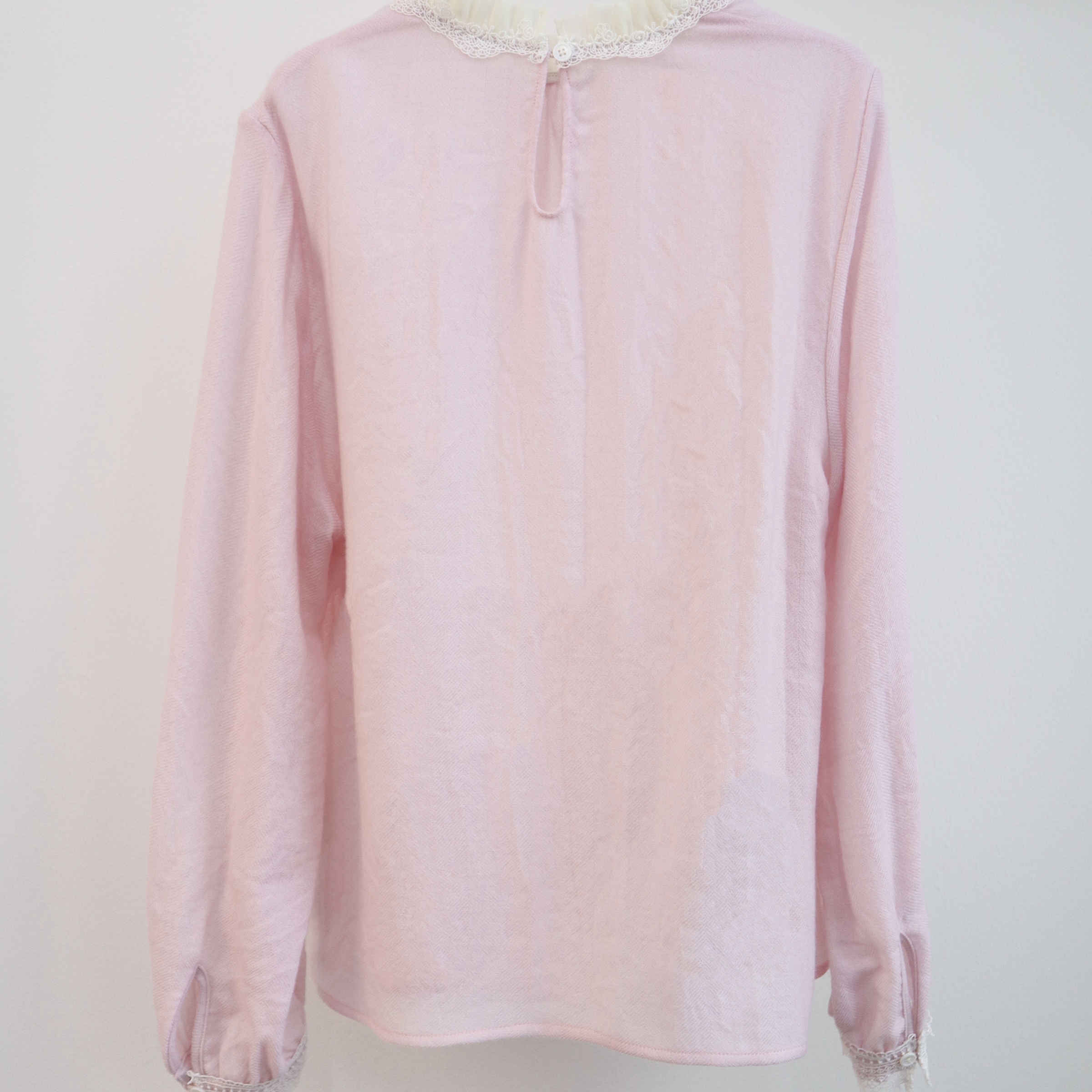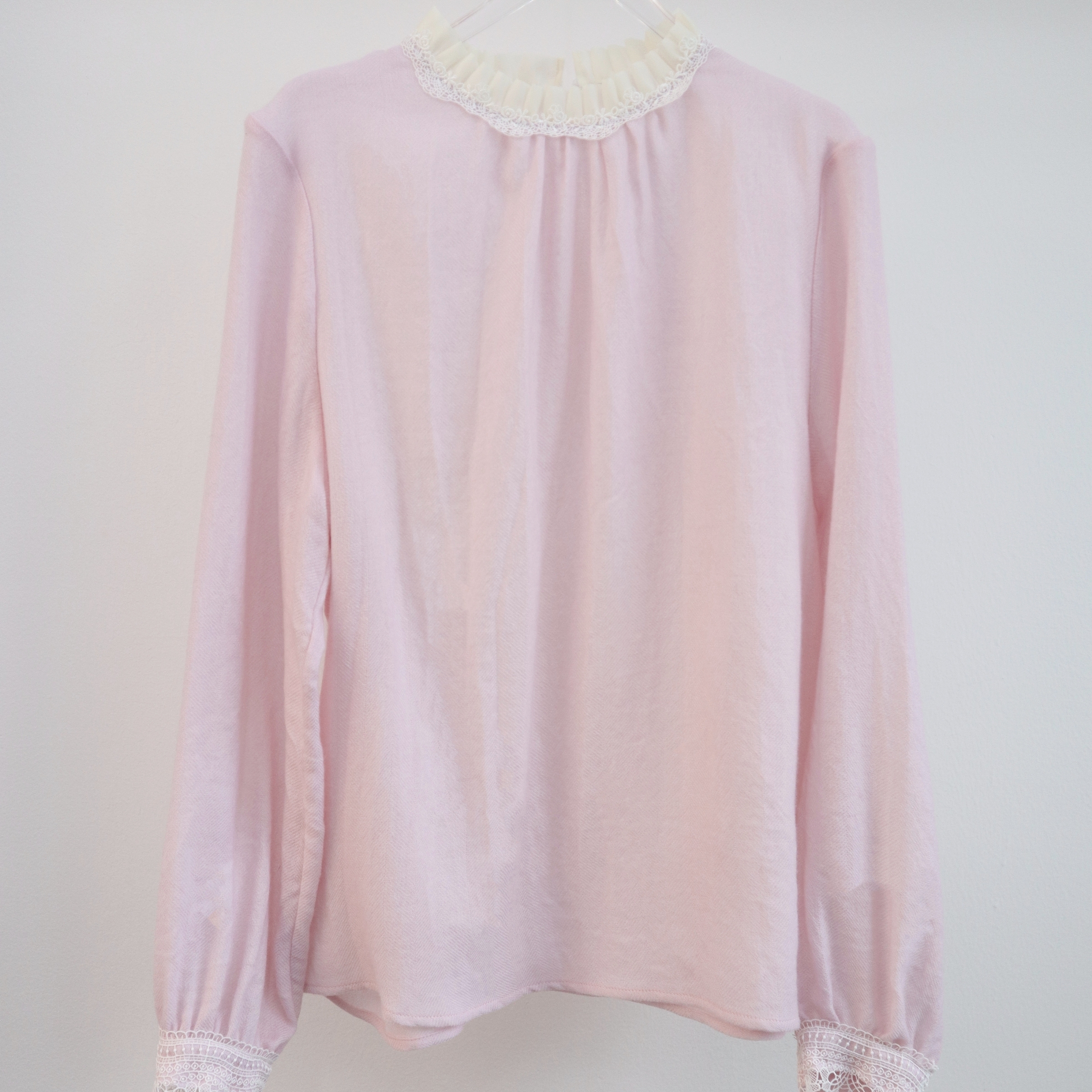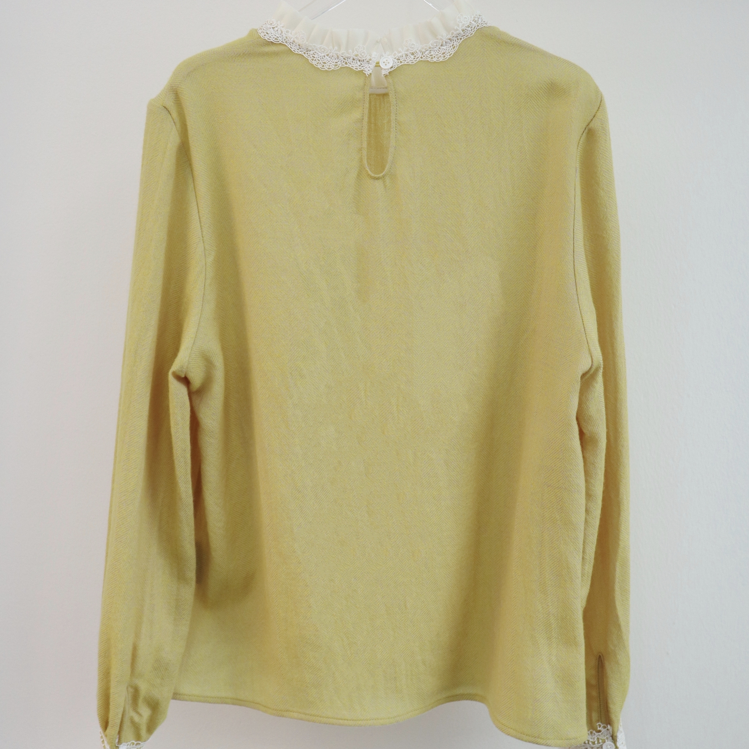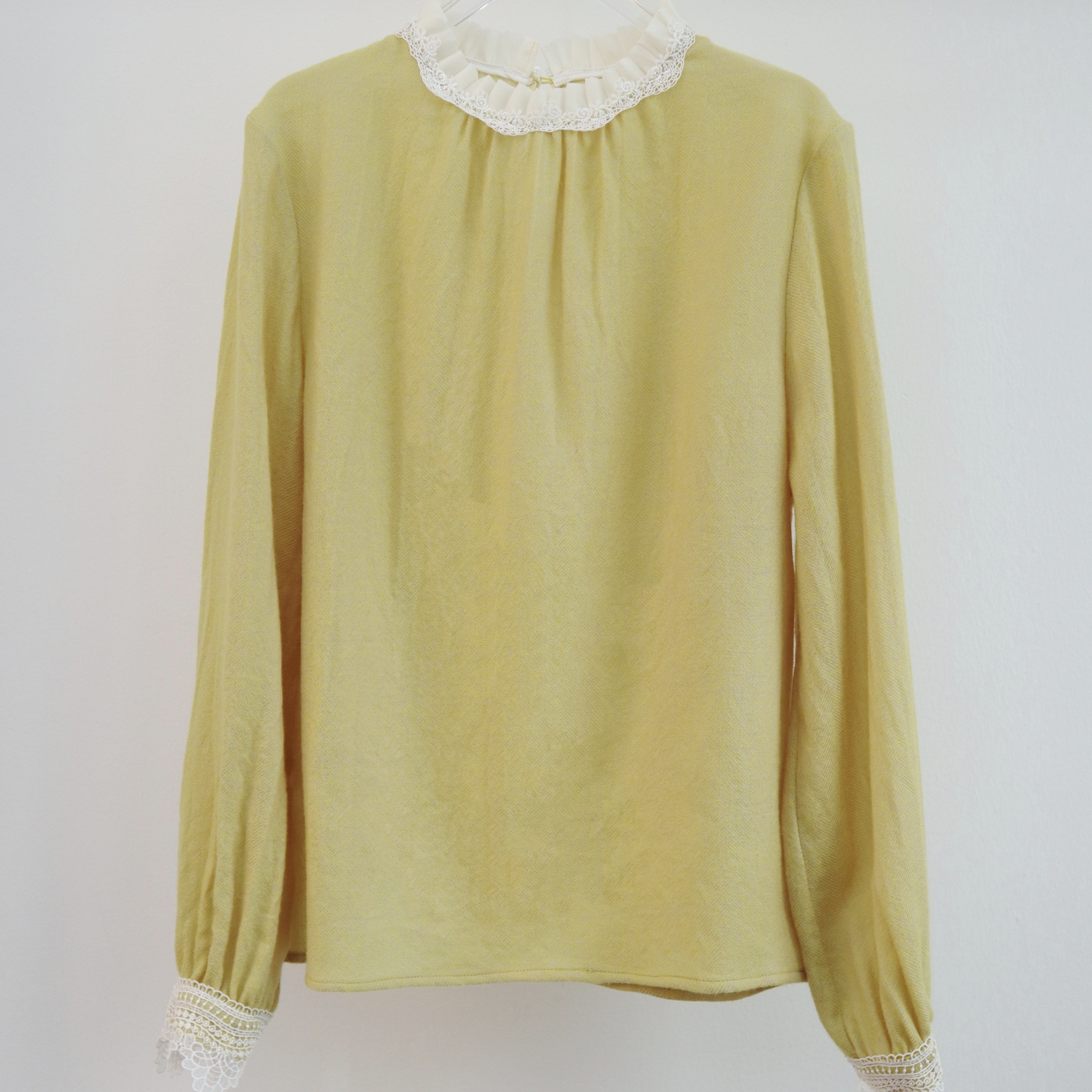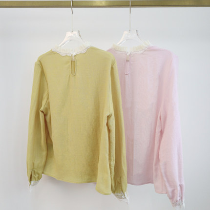 2025秋季新款时尚长袖衬衫百搭风黄/粉双色木耳边拼接蕾丝衬衣