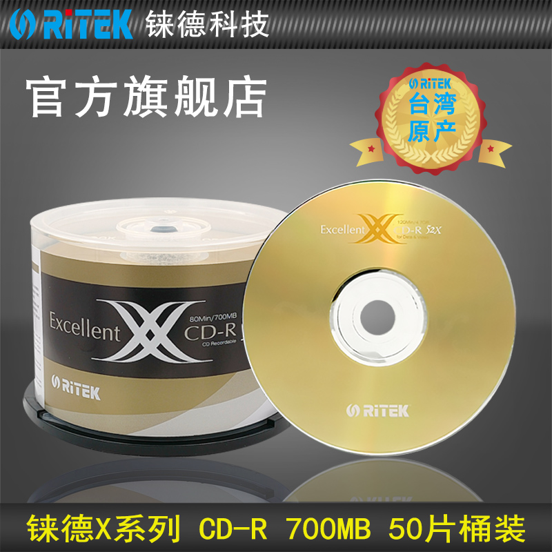 铼德数据银行 CD-R 52速700M 空白光盘/光盘/cd刻录盘/刻录光盘/音乐盘/刻录盘/E时代cd/光碟/车载光盘 50片