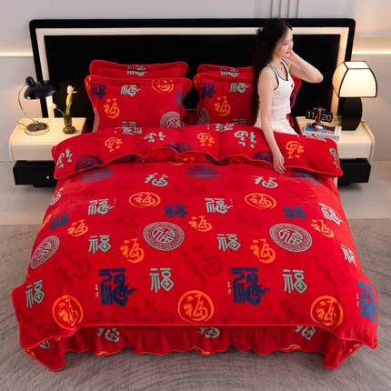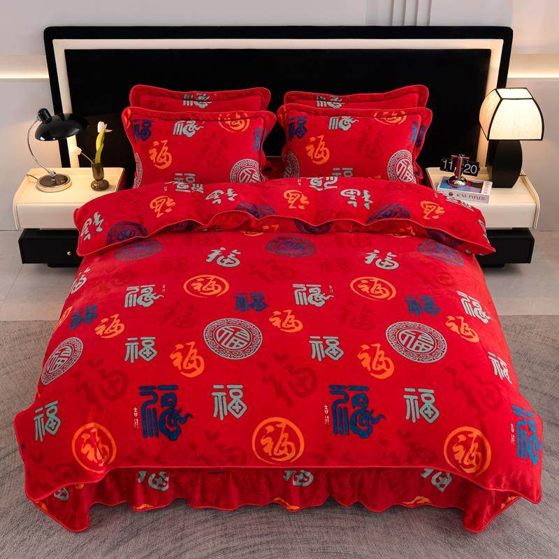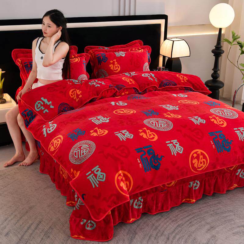 百福款牛奶珊瑚绒床上四件套双面法兰绒床裙款床单金貂绒冬季送礼