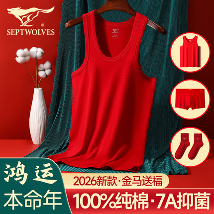 七匹狼红色男士背心男款纯棉打底2026马年无袖全棉本命年男生汗衫