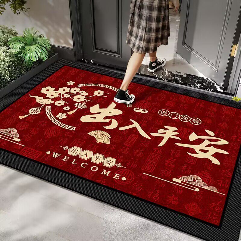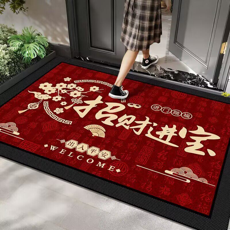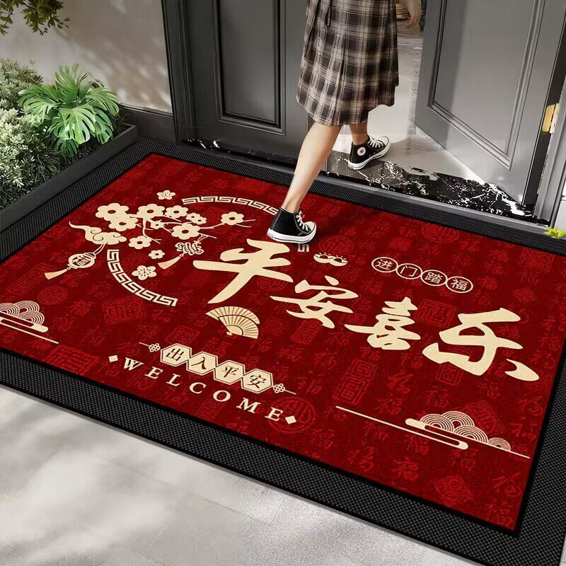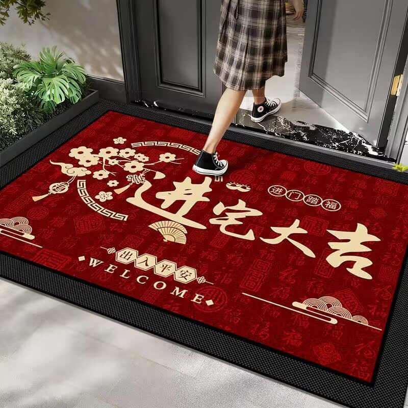 入户门地垫硅藻泥新年耐脏脚垫吸水速干门口地毯喜庆玄关垫可裁剪