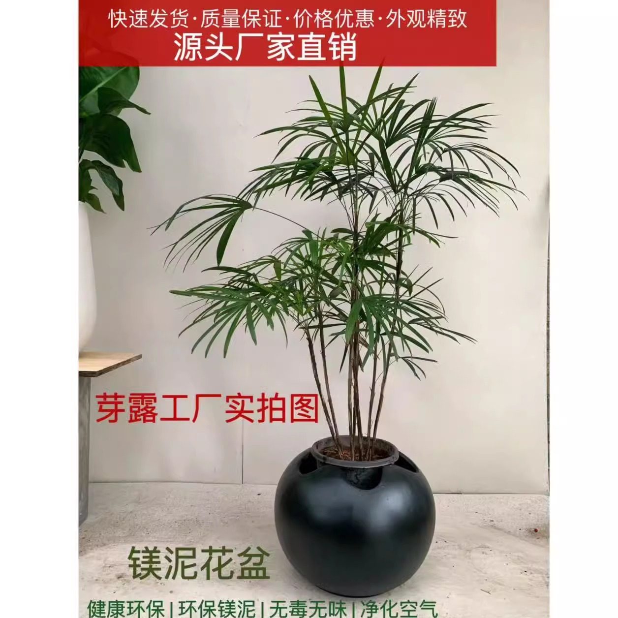 高颜值ins风镁泥圆球形家居办公室简约黑金刚千年木落地大型花盆