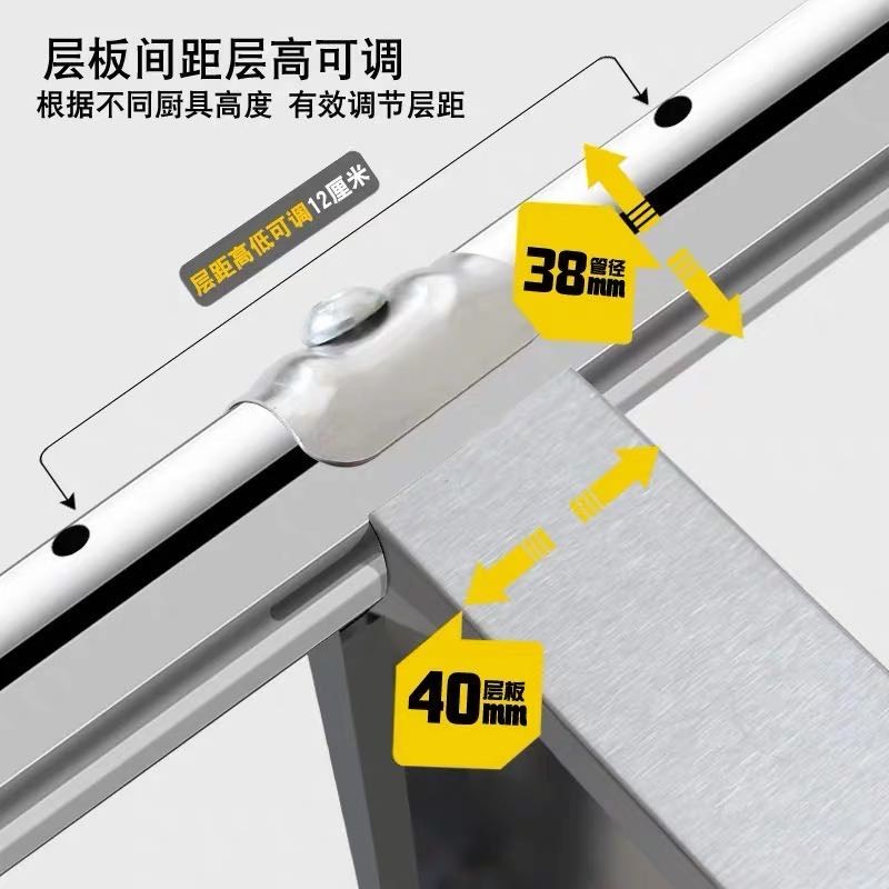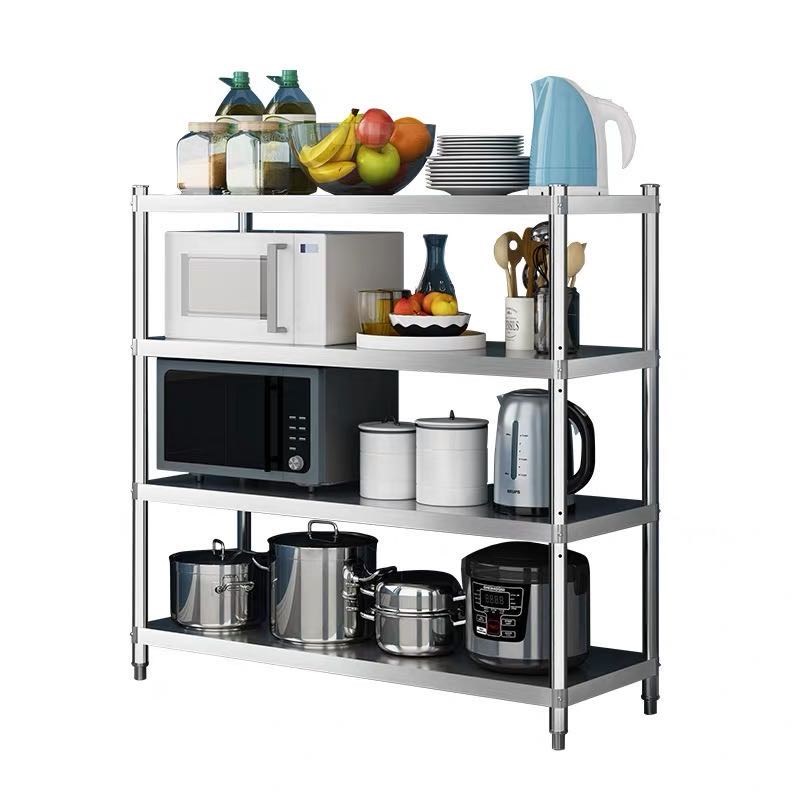不锈钢置物架4层烤箱微波炉架锅架厨房整理收纳储物架落地架高120