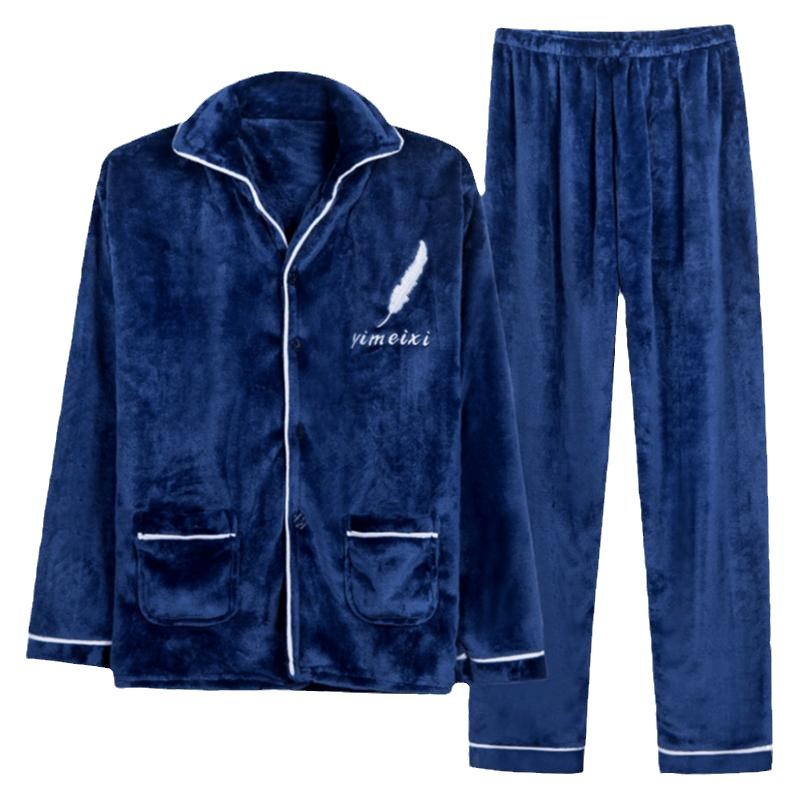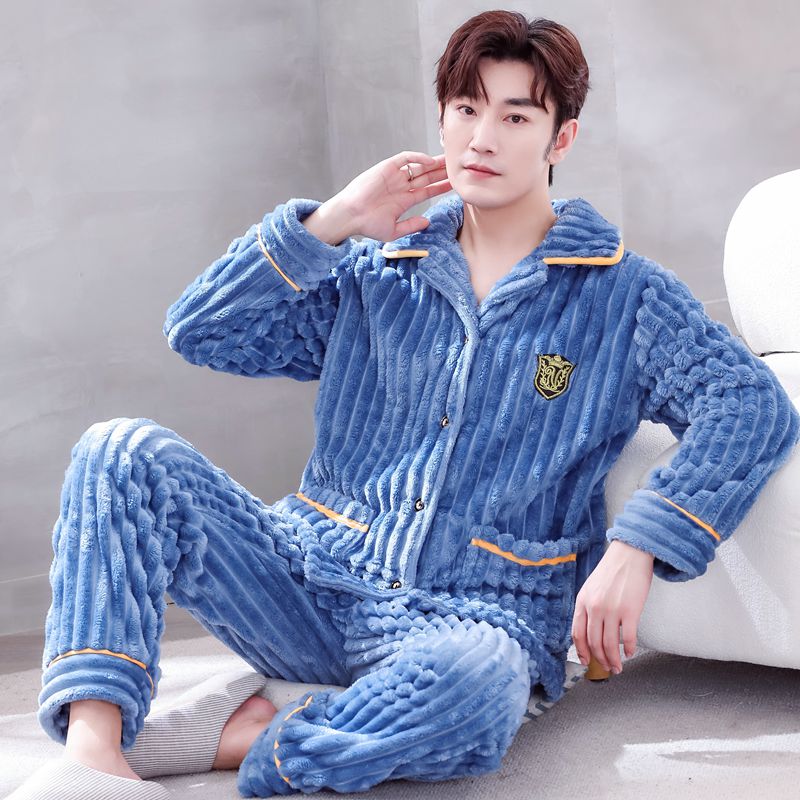 睡衣秋冬季男士珊瑚绒加厚长袖法兰绒套装中老年加肥加大码家居服