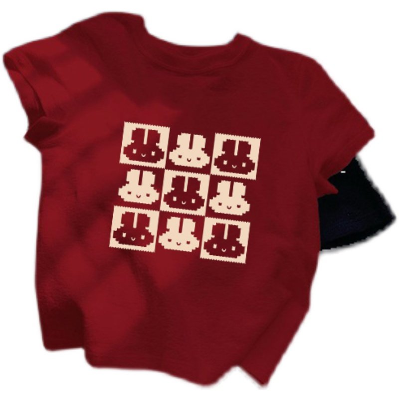 女童装纯棉短袖t恤2025新款夏装儿童衣服洋气时髦夏款红色上衣潮
