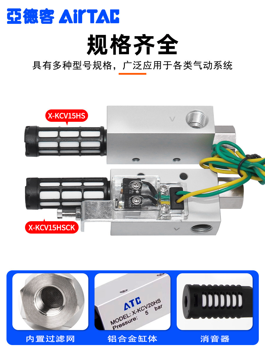 亚德客负压真空发生器X-KCV10/15/20/25/30HSCK大吸力真空阀吸盘