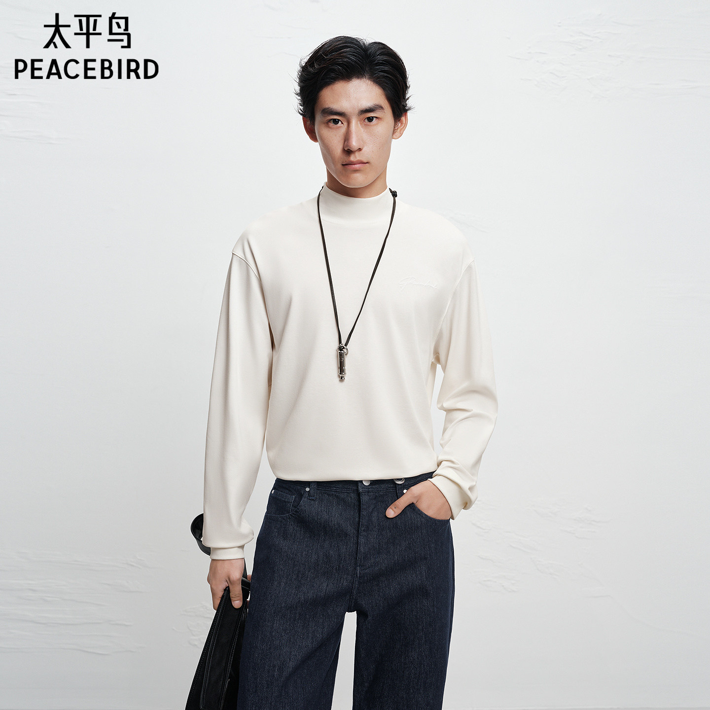 【商场同款】太平鸟男装半高领长袖T恤冬新款保暖内搭B1CPF4463