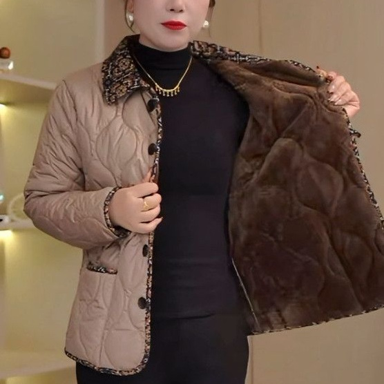 妈妈装秋冬季时尚洋气加绒外套中老年女加绒小棉衣奶奶装秋冬外套