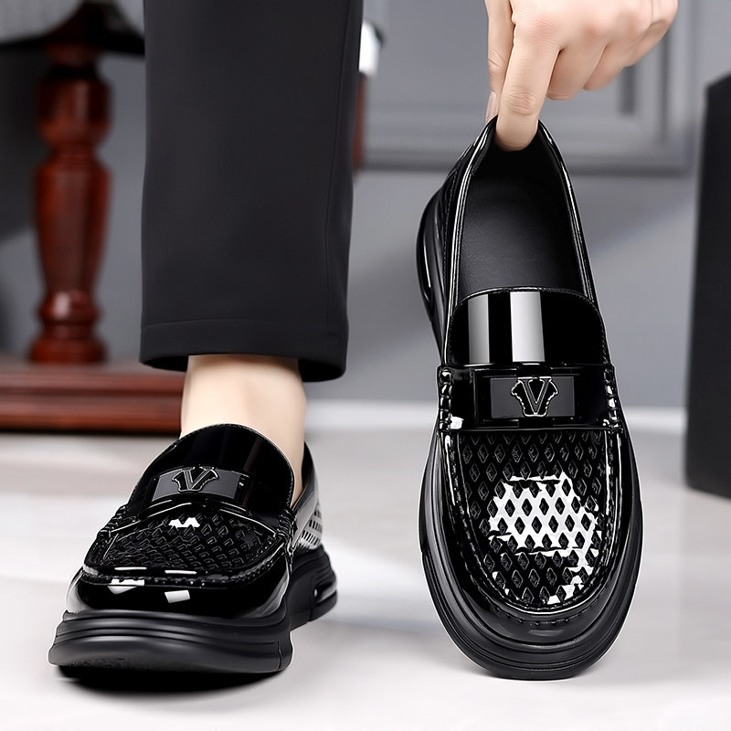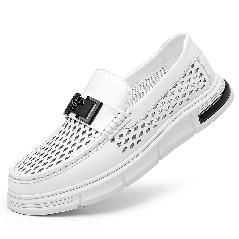 白色男鞋夏季新款镂空豆豆鞋德比鞋男商务透气正装皮鞋真皮皮凉鞋