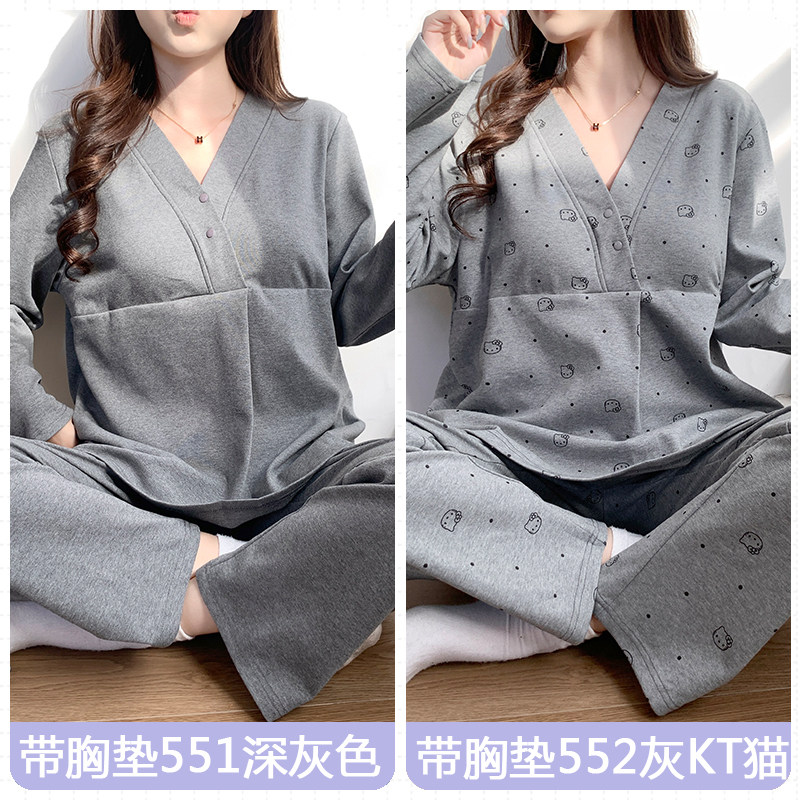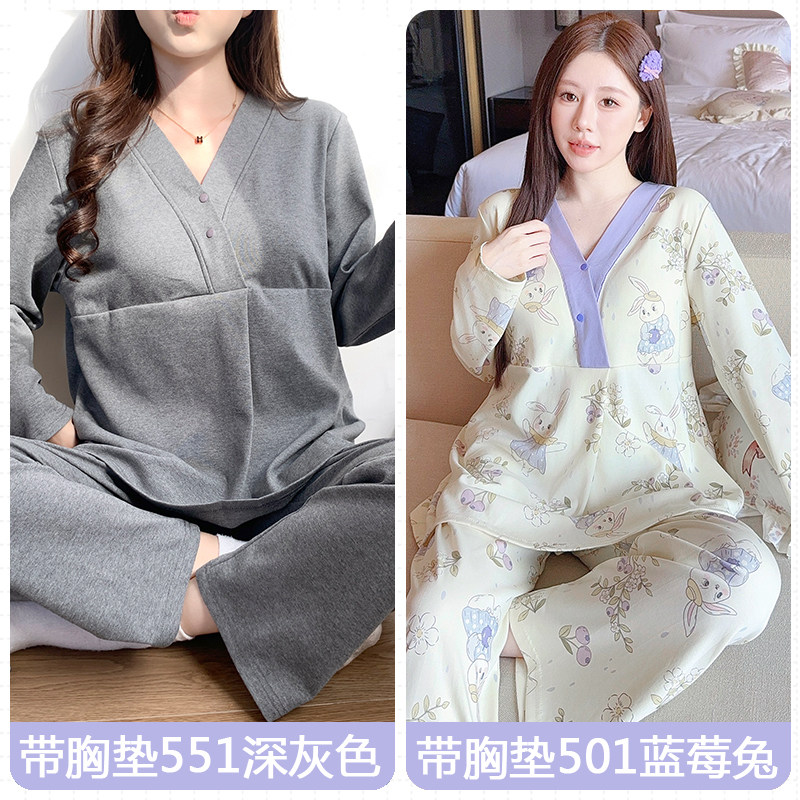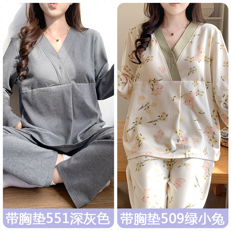 带胸垫春夏秋季薄款吸汗纯棉产后喂奶哺乳月子服孕妇睡衣女怀孕期