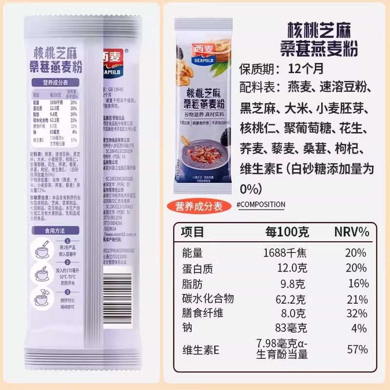 西麦核桃芝麻桑葚燕麦粉营养早餐谷物滋养冲饮高膳食纤维商超同款