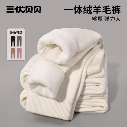 三优贝贝女童打底裤秋冬款加绒白色羊毛裤儿童保暖裤大童加厚棉裤