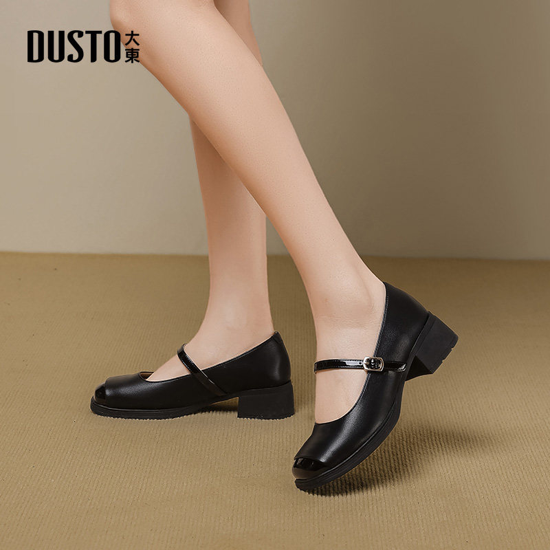 大东玛丽珍鞋2025秋季新款女鞋时尚舒适粗跟中跟一字带百搭女单鞋