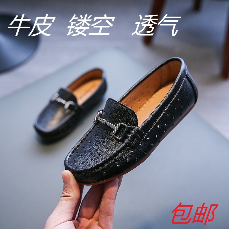 牛皮男童豆豆鞋儿童皮鞋2021年夏镂空小白鞋演出鞋真皮男孩小单鞋