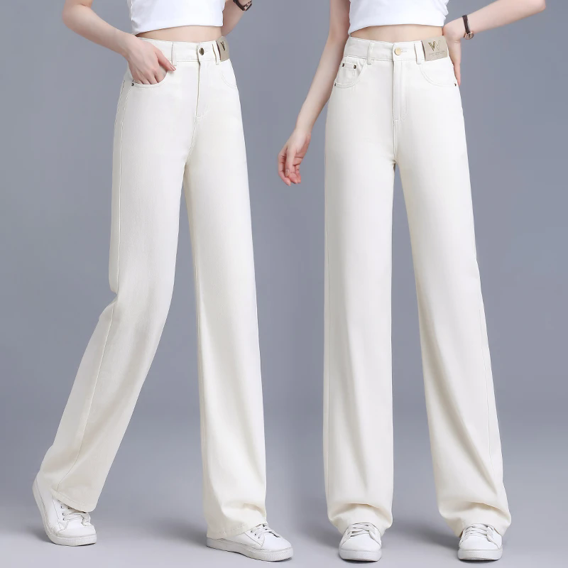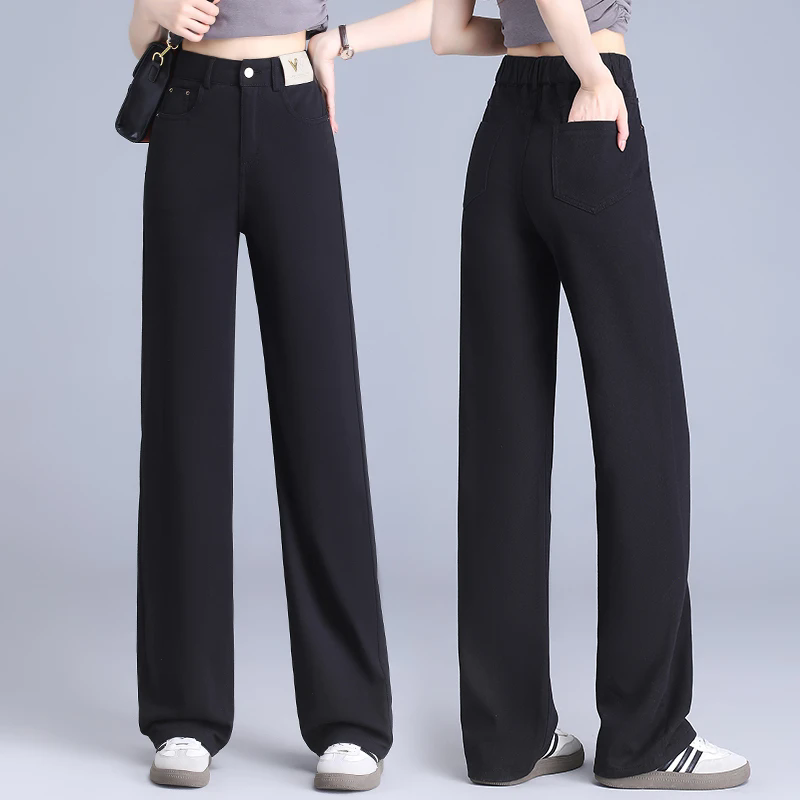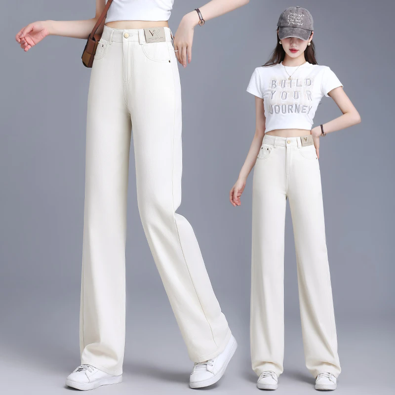 灰色窄版阔腿牛仔裤女2025春夏新款高腰显瘦宽松休闲百搭直筒裤子