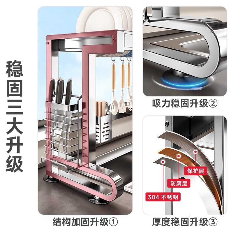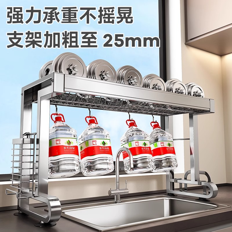 304不锈钢厨房水槽置物架碗碟收纳水池上方多功能放碗盘沥水碗架