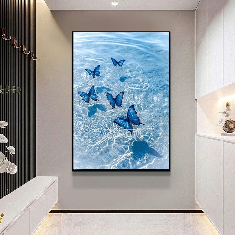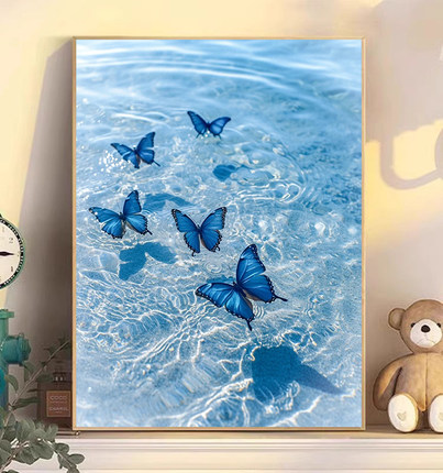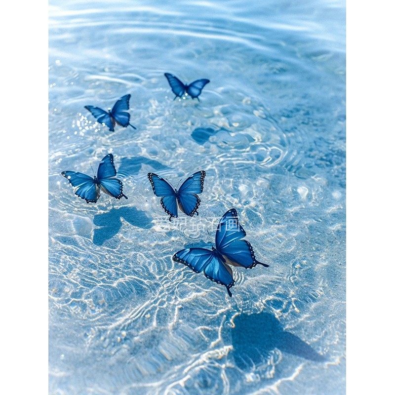 DIY方钻满钻钻石画钻石绣小清新蓝色海水蓝蝴蝶粘贴钻点钻十字绣