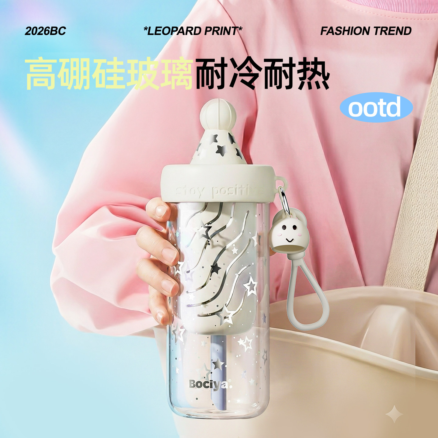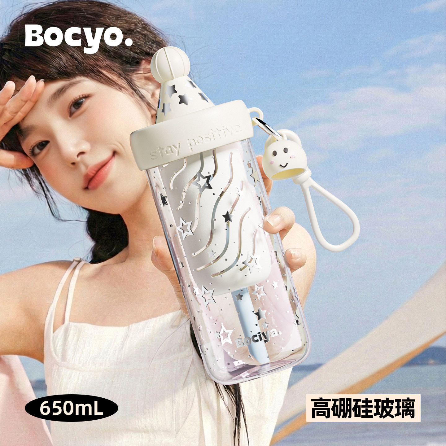bocyo女士专用泡茶杯子高颜值新款耐高温学生ins礼物吸管玻璃水杯