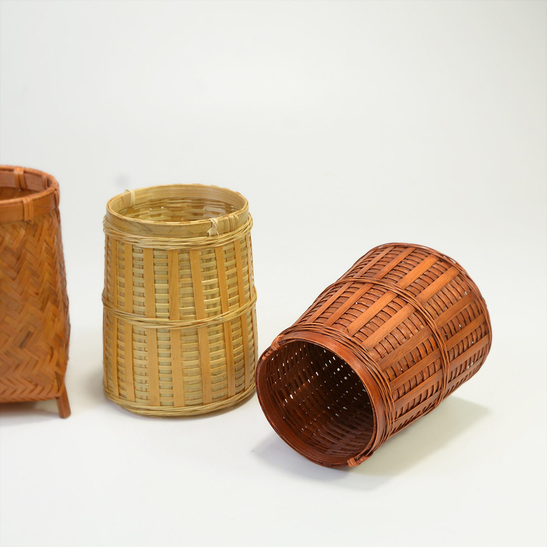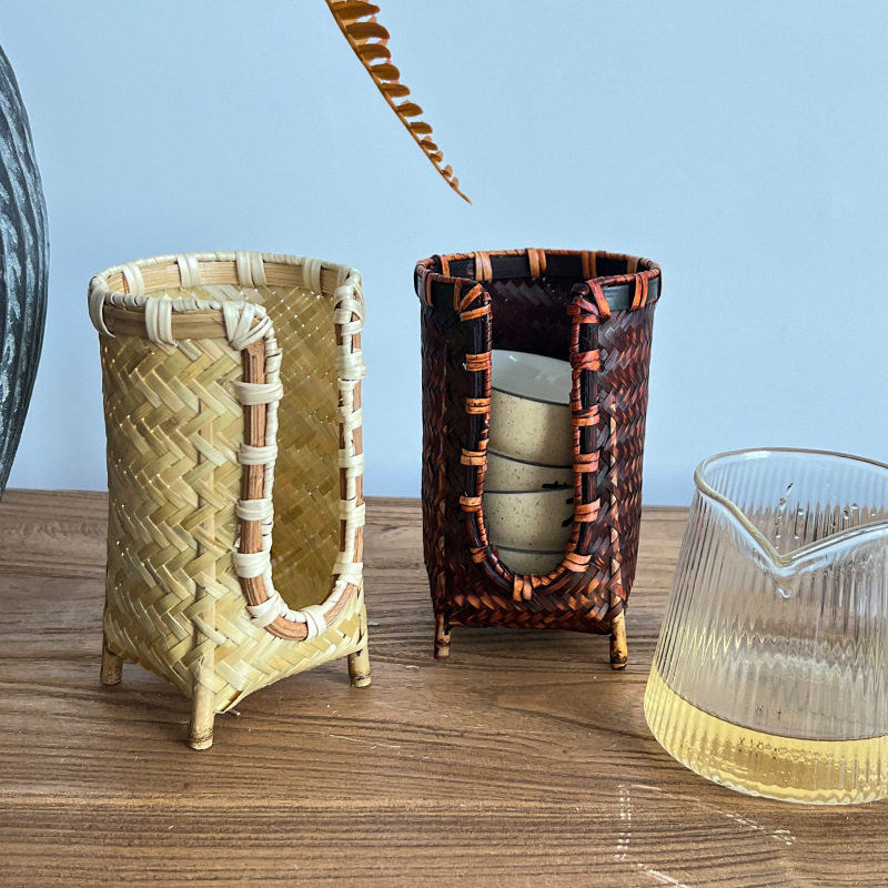 手工竹编茶道具田园风六君子笔筒化妆刷竹礼品收纳提篮拍摄道具