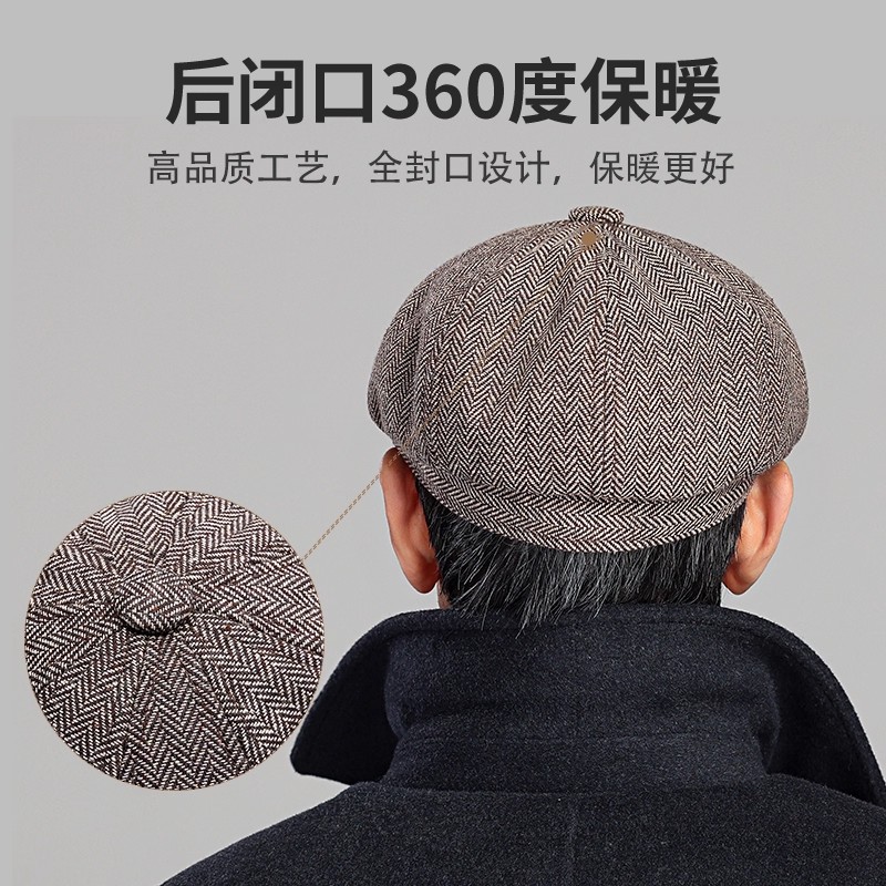 新款中老年人帽子男冬季加绒八角帽加厚保暖贝雷帽爸爸爷爷鸭舌帽