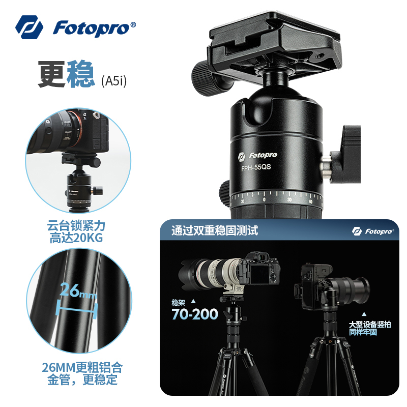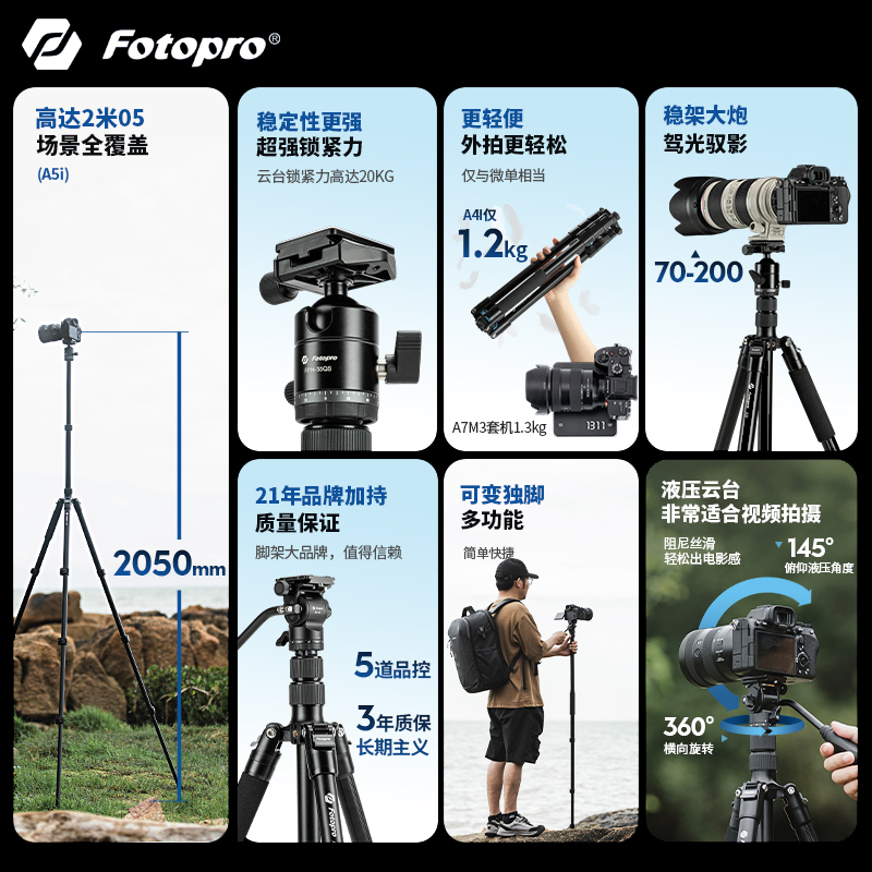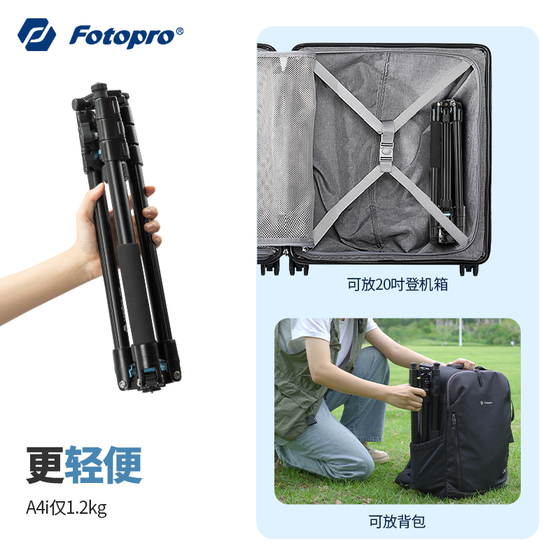 富图宝A4i旅行便携板扣三脚架A5i微单反相机摄影手机拍照户外直播专业碳纤维三角支架视频液压云台摄像独脚架