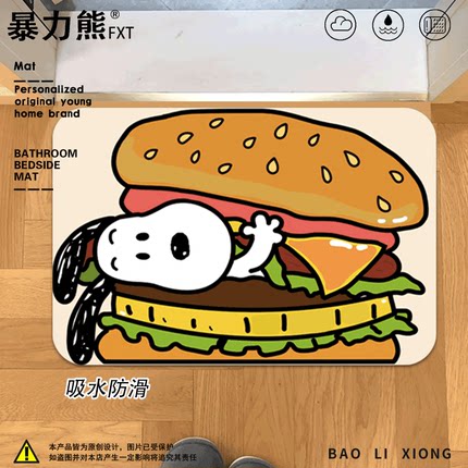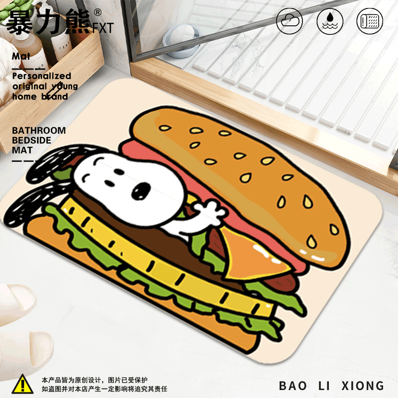 卫生间地垫防水防滑垫汉堡史努比硅藻泥地垫浴室吸水地垫阳台地垫