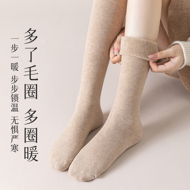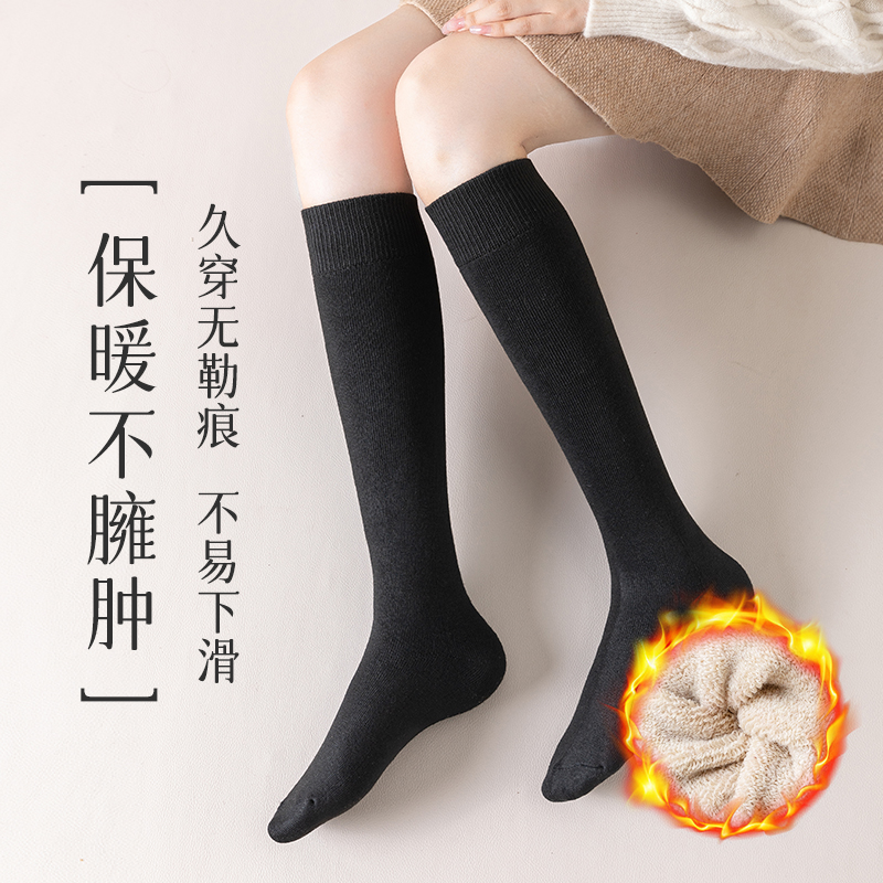 猫人毛圈小腿袜女秋冬季加绒加厚保暖护膝袜长筒过膝袜2022年新款