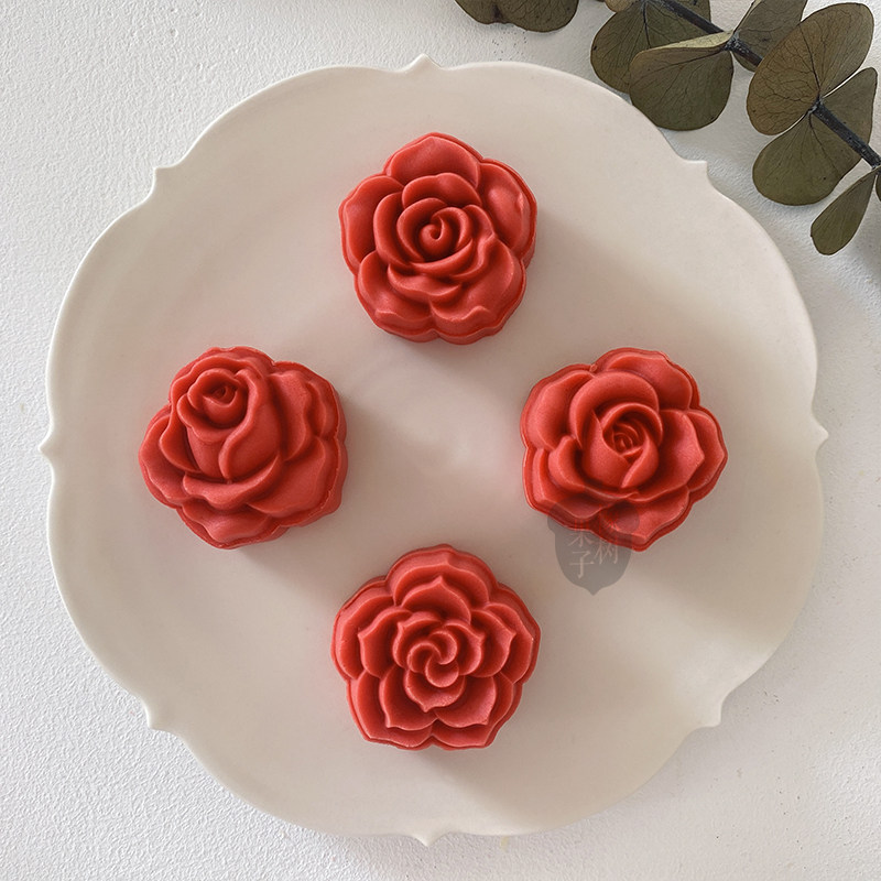 家用diy中秋节情人节玫瑰花绿豆糕点广式冰皮月饼模具50g