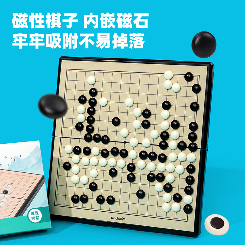 得力五子棋磁吸围棋儿童益智专用初学入门磁性可折叠便携棋盘套装