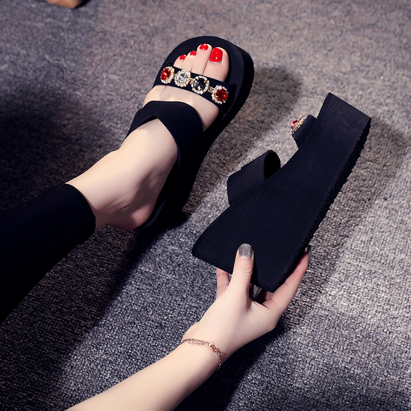 高跟一字粗跟拖鞋女士凉拖鞋外穿时尚厚底网红凉N鞋百搭2021新款
