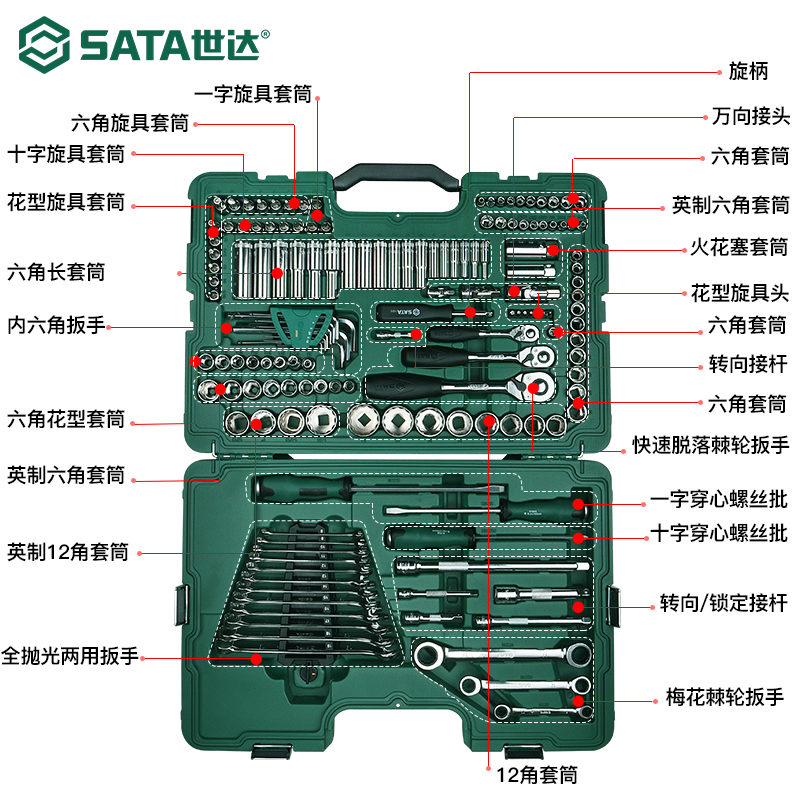 世达汽修工具套装150件修车专用组合件套128件汽修套筒扳手09510