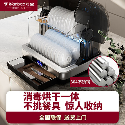 万宝官方正品台式消毒柜家用小型消毒碗柜迷你烘干一体304不锈钢